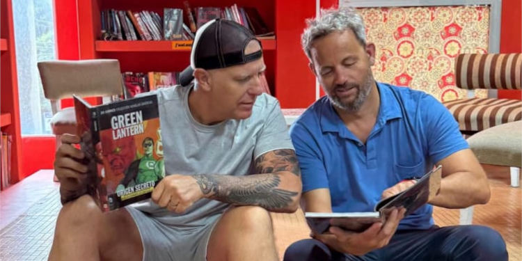 Durante un día lluvioso, el periodista aprovechó para visitar la Biblioteca Popular, donde compartió una tarde de lectura y conversación junto al intendente Hernán Arranz. En una de las historias publicadas en su cuenta de Instagram, Fantino relató que el encuentro dio lugar a debates sobre historia y política a partir de la lectura de cómics vinculados a la Guerra Fría, y destacó el intercambio intelectual que se generó en ese contexto.