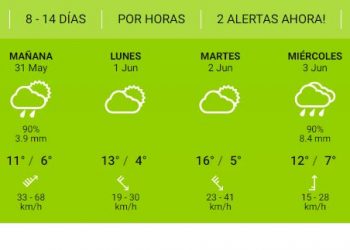El Servicio Meteorológico Nacional mantiene en vigencia varios alertas por fuertes ráfagas de vientos con lluvias abundantes en el Sur...