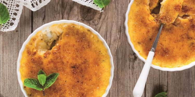 Dejamos enfriar sin tapar y espolvoreamos con el resto del azúcar. Quemamos con un soplete de cocina hasta que el azúcar se caramelice. Servir bien fría.