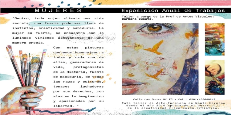 El lunes 16 de diciembre, a las 19 horas, tendrá lugar la inauguración en la Sala de Exposiciones del Centro de Convenciones de la muestra anual trabajos del Taller de Arte de la profesora de Artes Visuales, Bárbara Cusato.