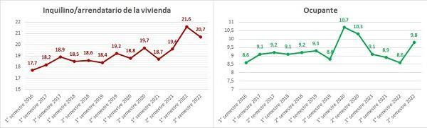 Navarro agregó que “También creció la cantidad a los que el INDEC llama ‘ocupantes’. No es que todos sean ocupantes ilegales, pero son personas que están ocupando una casa que no es suya. Los valores más altos se registraron durante la pandemia, y después pareció que empezaban a achicarse. Sin embargo, en el segundo semestre de 2022 están casi en los valores de la pandemia, es decir, cerca de 10% de los hogares. Si bien no es el registro más bajo, es prácticamente similar el porcentaje al peor momento que fue el segundo semestre del 2020, en plena pandemia”.