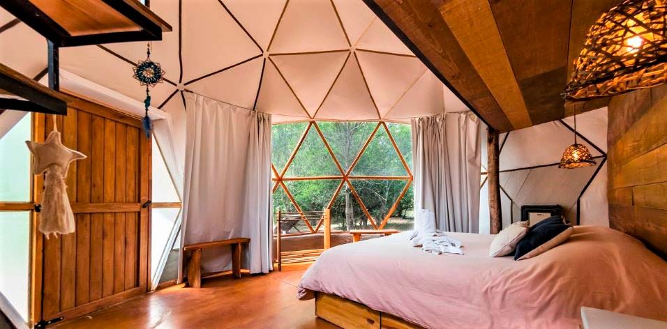 El glamping es una combinación de las palabras glamour y camping, que describe un estilo de acampar con las comodidades y el lujo de un hotel, pero en un entorno natural, tendencia en crecimiento en el mundo, que ofrece una experiencia de aventura en la naturaleza sin sacrificar el confort, con opciones de alojamiento como tiendas de safari, cabañas, casas en los árboles o yurtas, que suelen incluir camas cómodas, baños privados y otras facilidades modernas.